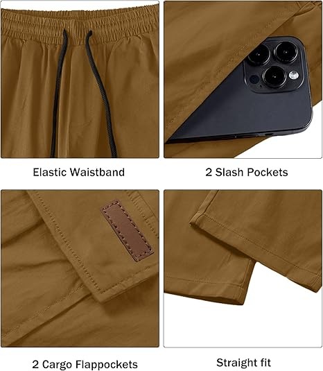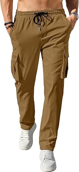 • Lightweight Material: These cargo pants for men are made from a lightweight utility polyester fabric that is durable while remaining breathable and comfortable.